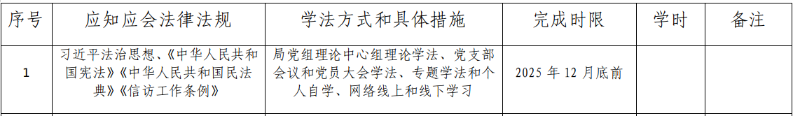 2.领导干部学法要坚持集中学法和自主学法、线上学法和线下学法、考试学法与日常学法、法治教育与法治实践相结合。学法方式包括:各单位可结合党委(组)理论学习中心组学法、政府常务会议学法、行政执法资格考试、国家工作人员旁听庭审活动、国家工作人员年度学法考试、行政机关负责人出庭应诉、领导干部任前学法考试、法治讲座和法治报告会、宪法集体宣誓等形式开展领导干部应知应会法律法规学习。